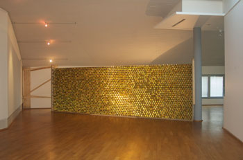 Durch die Akkumulation von seriell hergestelltem Material, auch durch die pragmatische Ausführung der Installation unterwandert Jochen Traar die Funktion der Autorenschaft. Anders als beim künstlerischen Unikat gibt es beim Multiple keinen eindeutigen Verweis auf einen Ursprung, vielmehr handelt es sich um eine horizontale Befragung des "Immer Gleichen". Für das Multiple ist eben nicht entscheidend, ob der Künstler einzelne Partikel selbst gefertigt hat oder ob er sie produzieren lässt. Jochen Traars Ausstellung in der Österreichischen Botschaft demonstriert das in mehrfacher Weise: Der Künstler wird zum Programmierer eines Werkes, das durch seinen offenen Ausgang bestimmt ist. Die Autorenschaft bleibt selbst eine multiple und das Werk erreicht seine Vollendung nicht schon durch die Setzung des Künstlers, sondern in der soziale Interaktion mit dem Publikum.Und so möchte ich mit einem Zitat von Joseph Beuys schließen: „Wenn Ihr alle meine Multiples habt, dann habt Ihr mich ganz“.