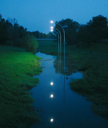 drei straßenlaternen im lahnbach an die ortsbeleuchtung angeschlossen